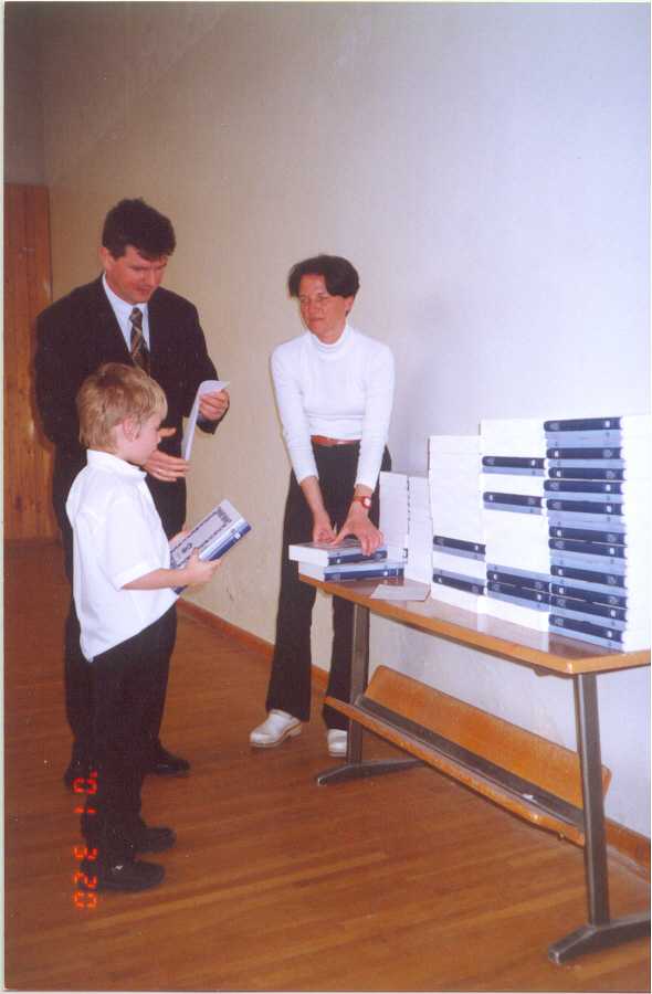 Erstklässler haben das Millenniums - Lesebuch in Empfang